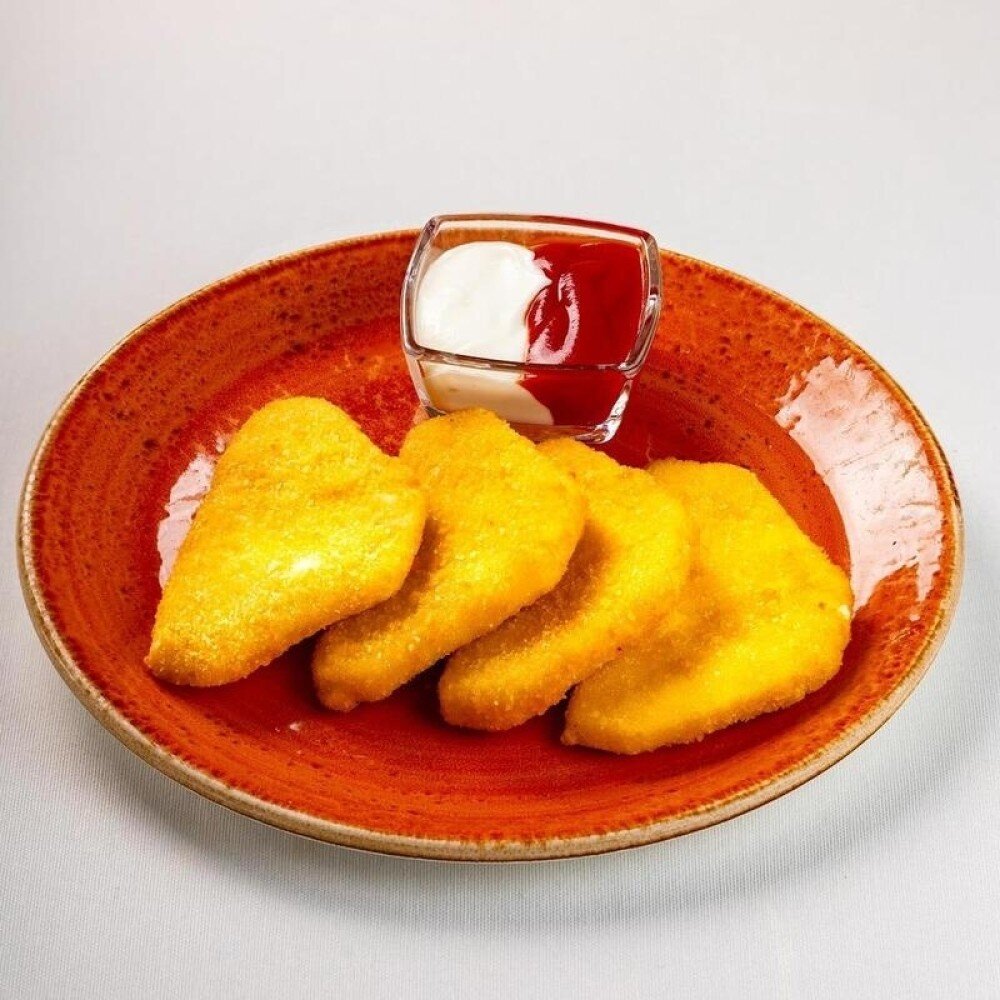 Жареный сыр сулугуни в нежной хрустящей панировке.