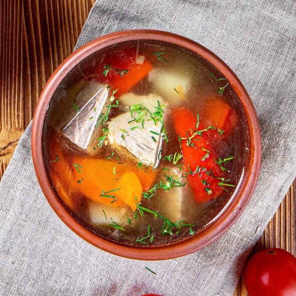 Суп из баранины и овощей, насыщенный ароматами специй и трав.