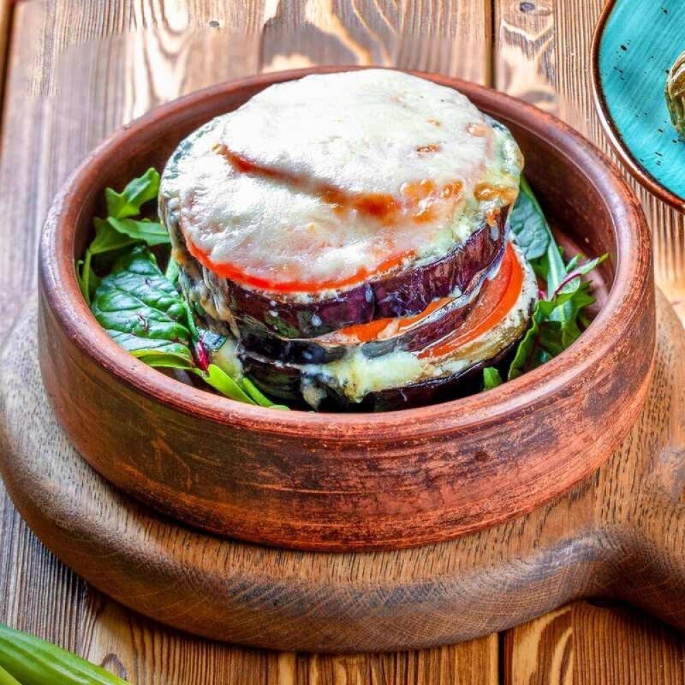 Запеченые в печи под сыром сулугуни баклажаны и помидоры.