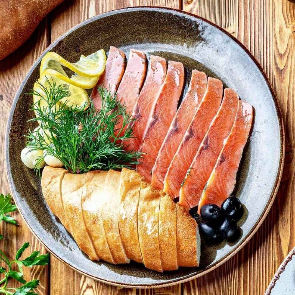 Слабосаленая семга по фирменному рецепту шеф-повара.